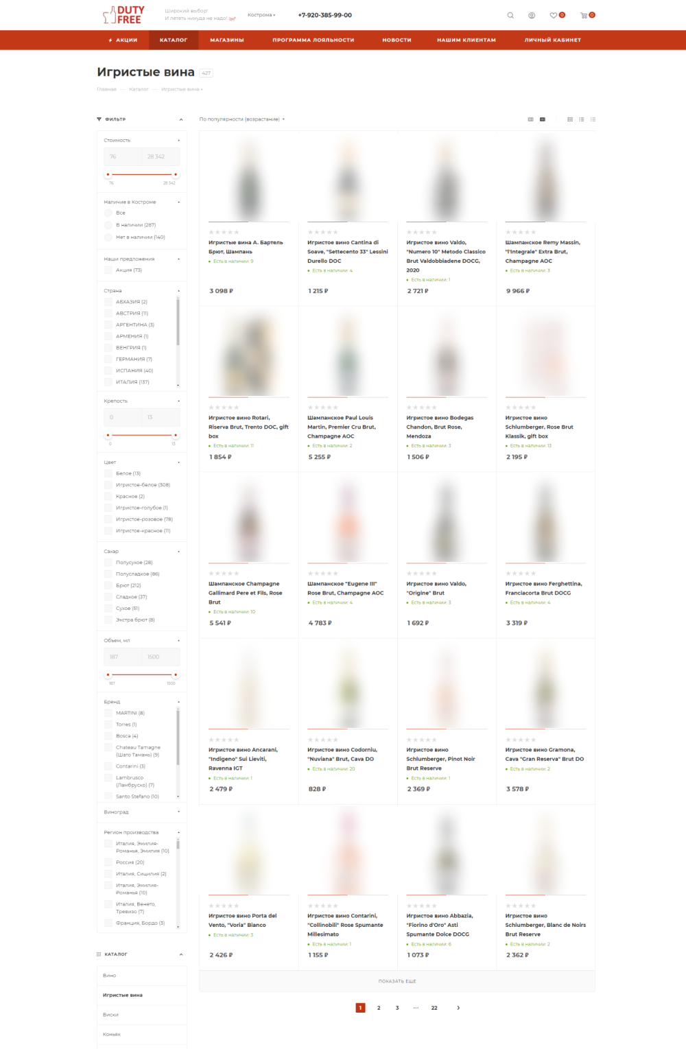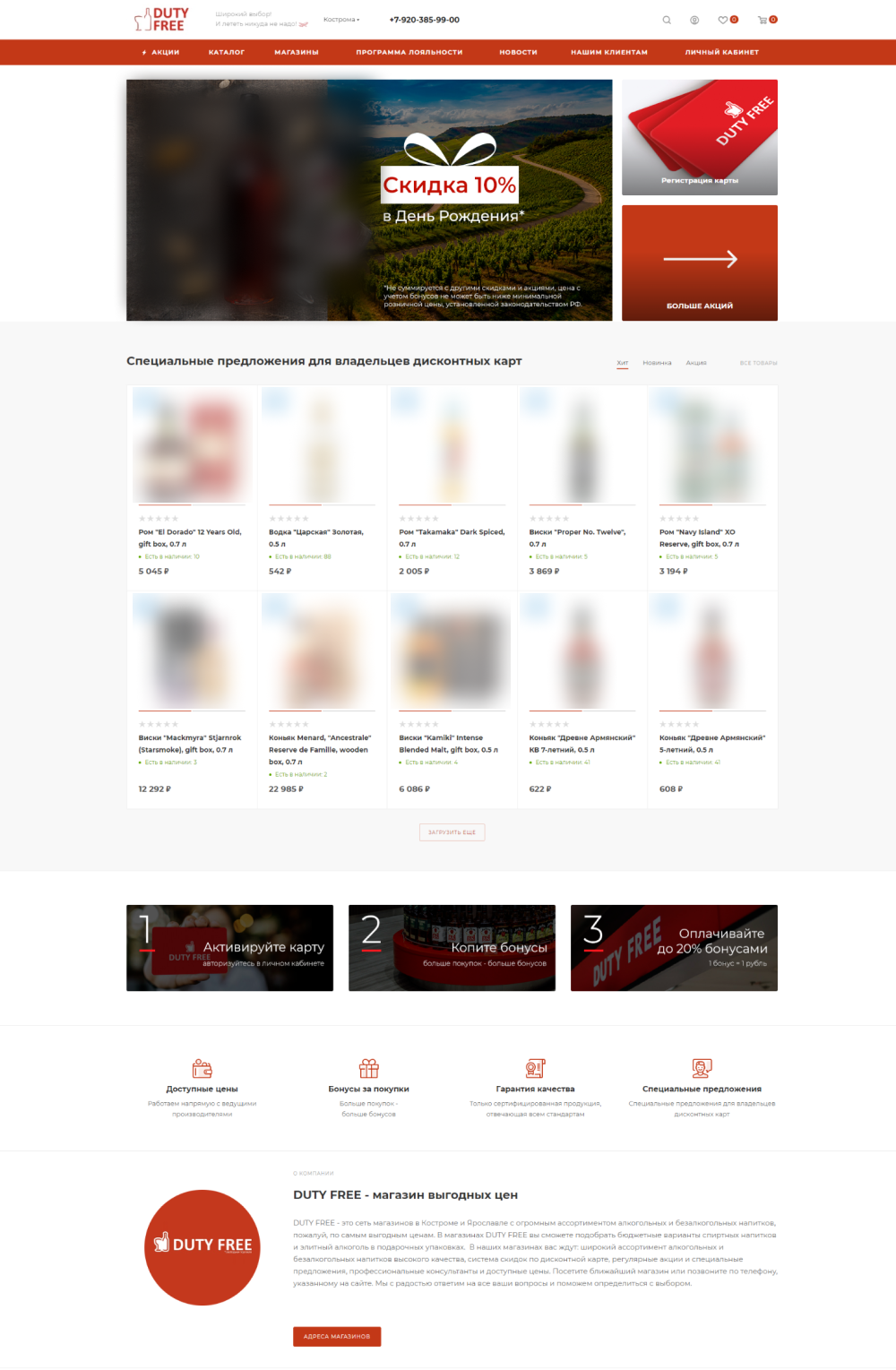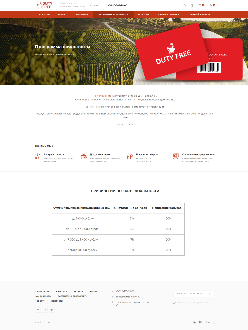 Интернет-магазин для сети винных магазинов DUTY FREE. Запуск программы лояльности с личным кабинетом на сайте и выводом данных о накоплениях клиента по карте.